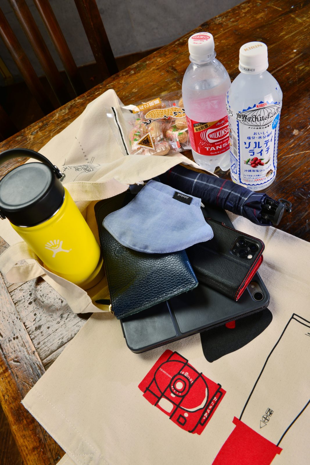 水筒が横にならないトートバッグ、「すいトート」を作っている「サンシャインクリエイティブさん」に依頼。おにぎりの通い袋として使える、おにぎりばっぐができた。Yamadamura+SHOP